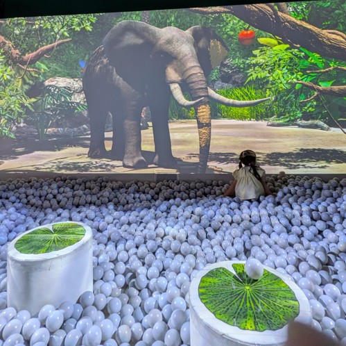 ”どろんこジャングル”では、ボールプールの中で、ゾウさんと遊んだりすることができます!
